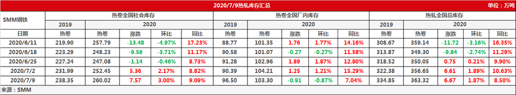 7月第二周全国热卷库存