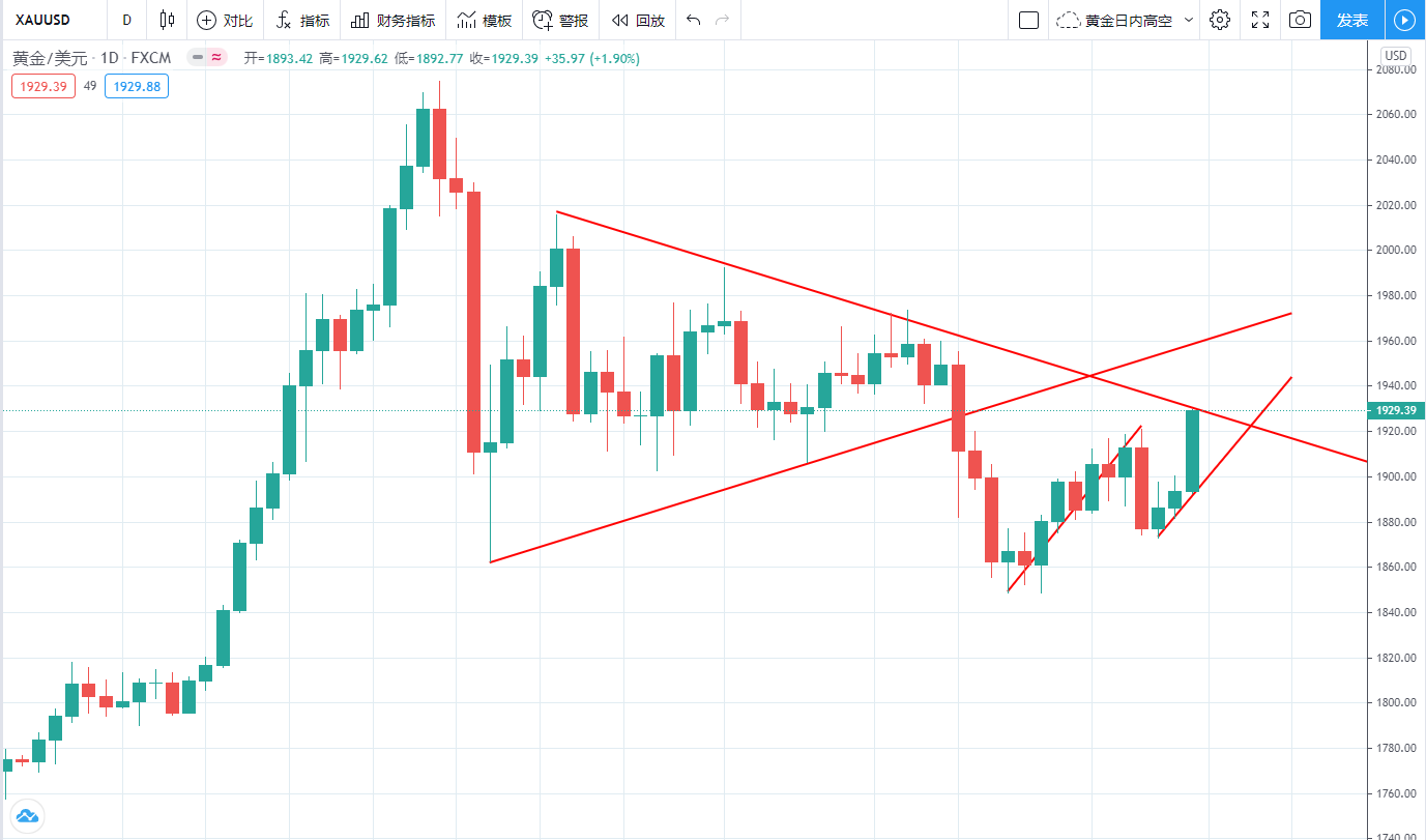 黄金周五收大阳,下周还有一涨,月线阻力在1965,