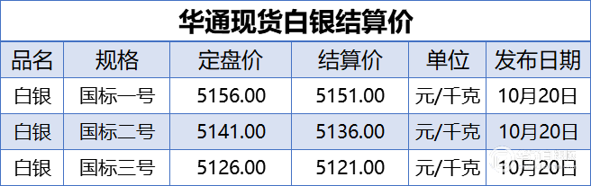 上海华通现货白银结算价:一号国标、二号国标、三号国标如下: