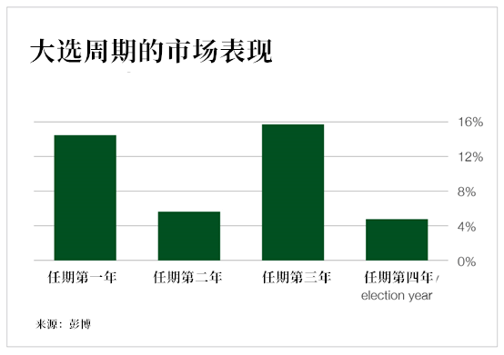 正如上图所示,无论谁入主白宫,第二年金市都有可能走高。