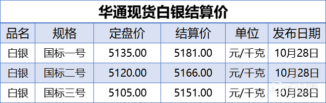 上海华通现货白银结算价:一号国标、二号国标、三号国标如下: