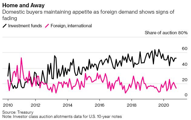 美国财政部即将发行超过4万亿美元规模空前的国债,以提供纾困资金。而且随着确诊病例再度激增,发债规模还可能进一步上升,美债市场将需要尽可能多的买家,无论来自国内还是海外。