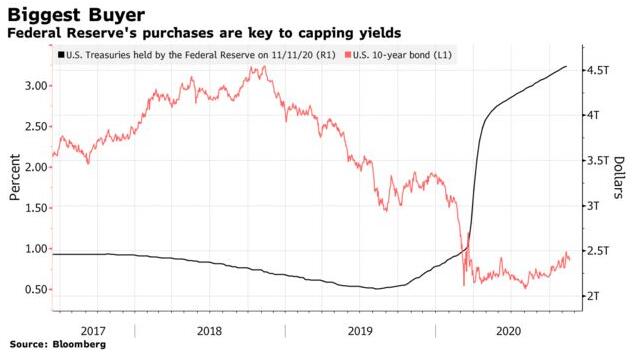 但真正的重任,或许还将落到美联储的肩上。美联储是今年最大的美债国内买家,3月以来已经累计买入大约2万亿美元,以应对卫生事件带来的经济损失。美联储购买国债之举帮助压低了政府的发债成本,使10年期国债收益率保持在1%以下。