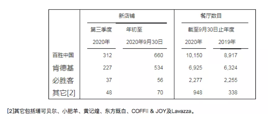 百胜中国2020第三季度新店开发情况