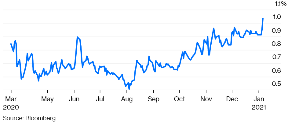 利率策略师们也早就预测一旦美国参议院也落入民主党手中,十年期美债收益率会攀升突破该意义重大的心理关口。