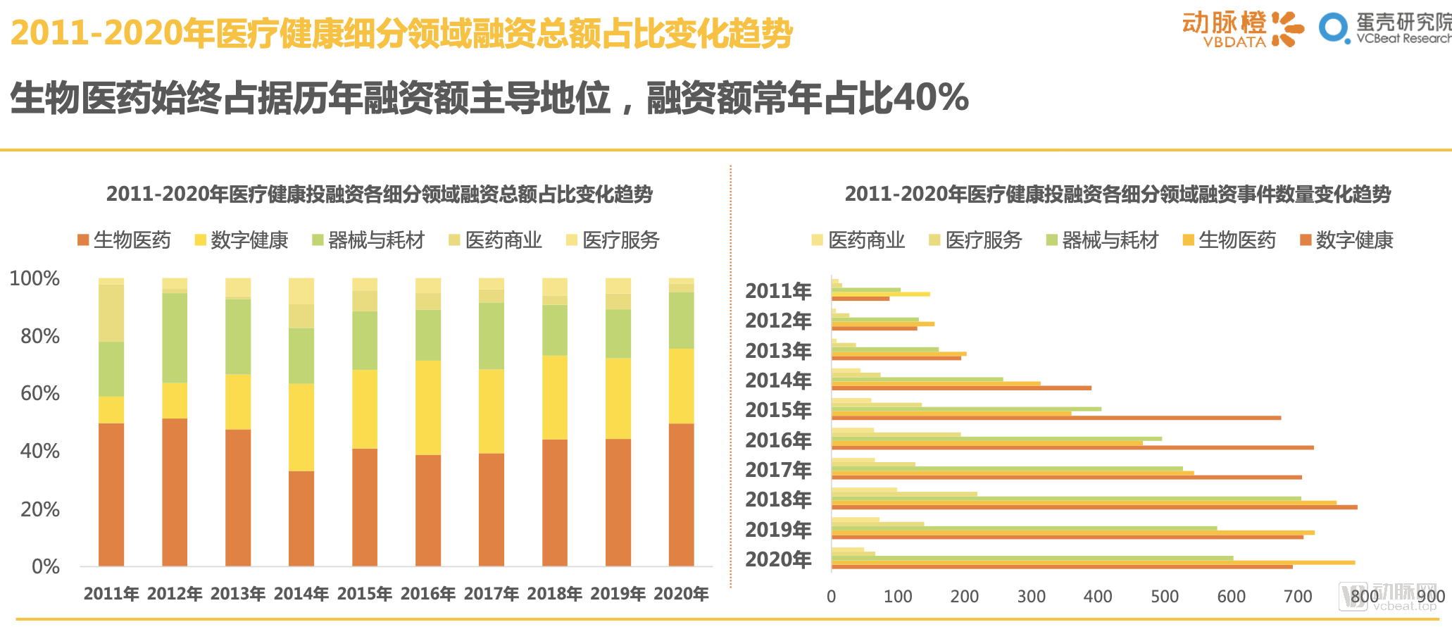 2.1 生物医药融资额高居榜首,超过数字健康和器械之和