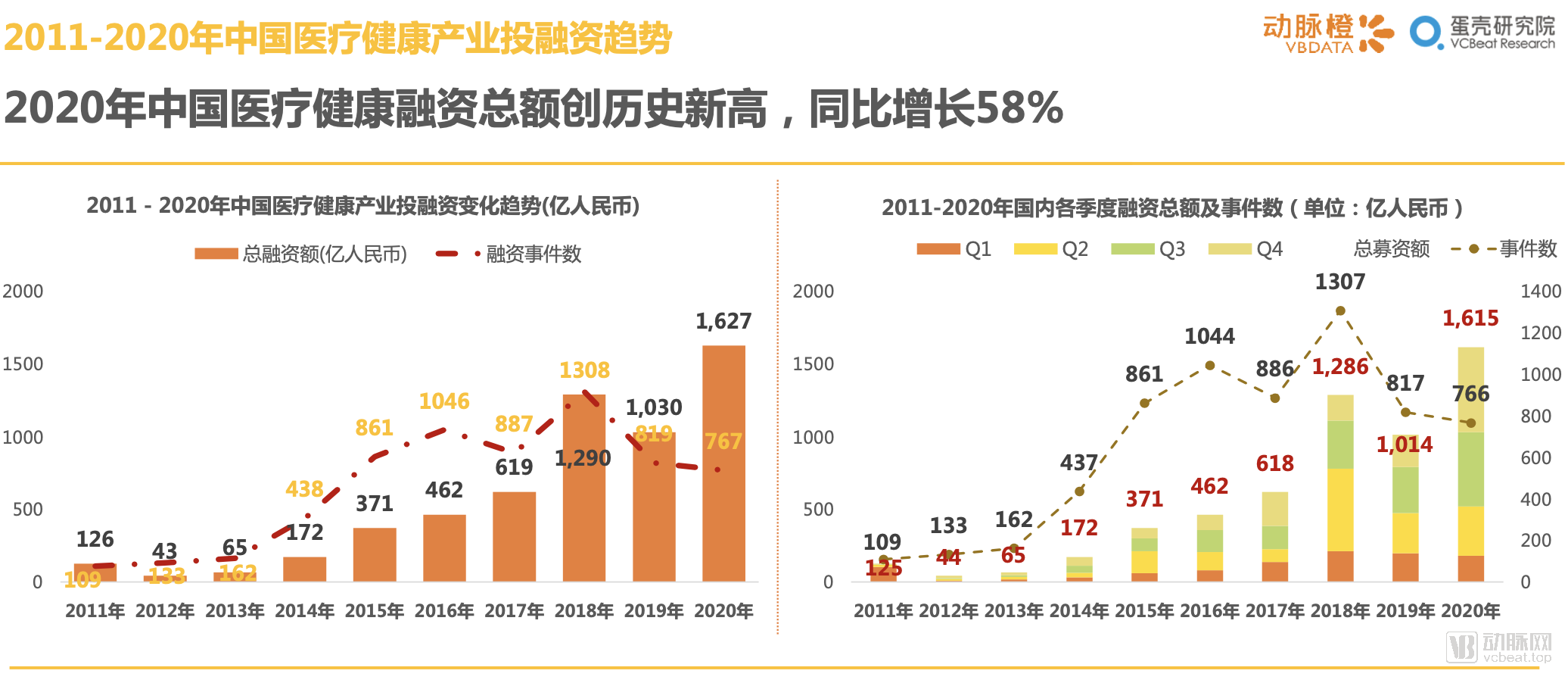二.2020年中国医疗健康融资总额创历史新高,同比增长58%