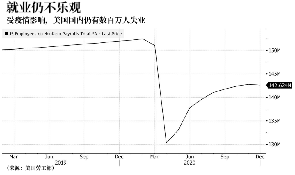 目前拜登政府的官员们指出,疫情使美国就业人数减少了约1000万,现在不是政府退出刺激支持的时候。白宫国家经济委员会主任布莱恩·迪斯 1月31日在接受媒体采访时说:“我们迫切需要采取全面行动。零散的支持根本没用。”