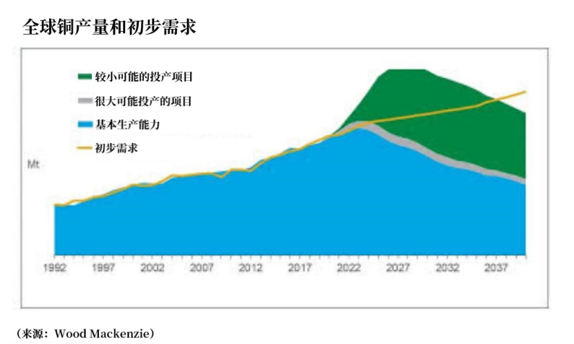 尽管对贱金属的需求正在改善,但预计贱金属的供应不会增长得那么快,因为这些矿山都是非常大的项目,很难投产。这些矿山的品质今后也将会下降。铜供应量(以及铜的银副产品供应量)在未来几年将缓慢增长(见下图)。