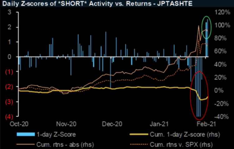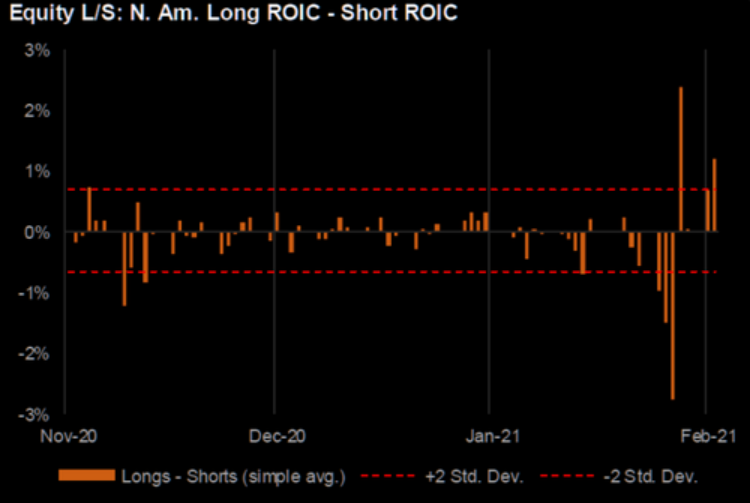 经历了上周的极端波动之后,对冲基金的情况在近几天有所缓和。GME等股票大幅回落,使得许多基金回补了1月的损失。随着对冲基金重新增加总风险敞口,交易活动正在回归正常。