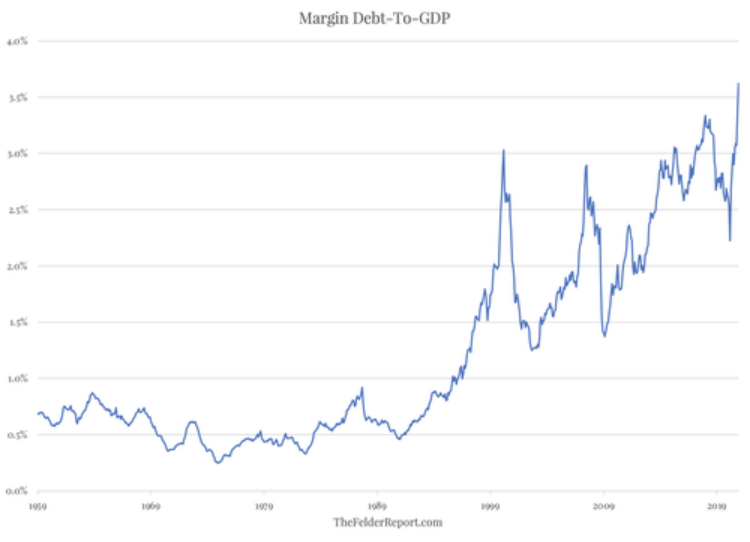 Jesse Felder称,如果用保证金债务(按照经济规模正常化的水平)来衡量,那么就会发现,现在的投机行为是多么“猖獗”。