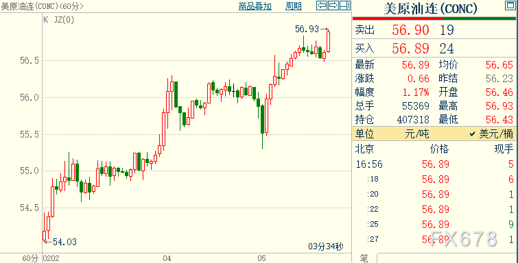 华创证券指出,近一周NYMEX原油期货持续上涨,已突破56美元/桶关口,创一年以来新高。需求陆续复苏、减产执行有效、库存持续下降等为主要原因。在油价上涨的推动下,油气勘探开发支出有望提升,并带来设备投资需求。