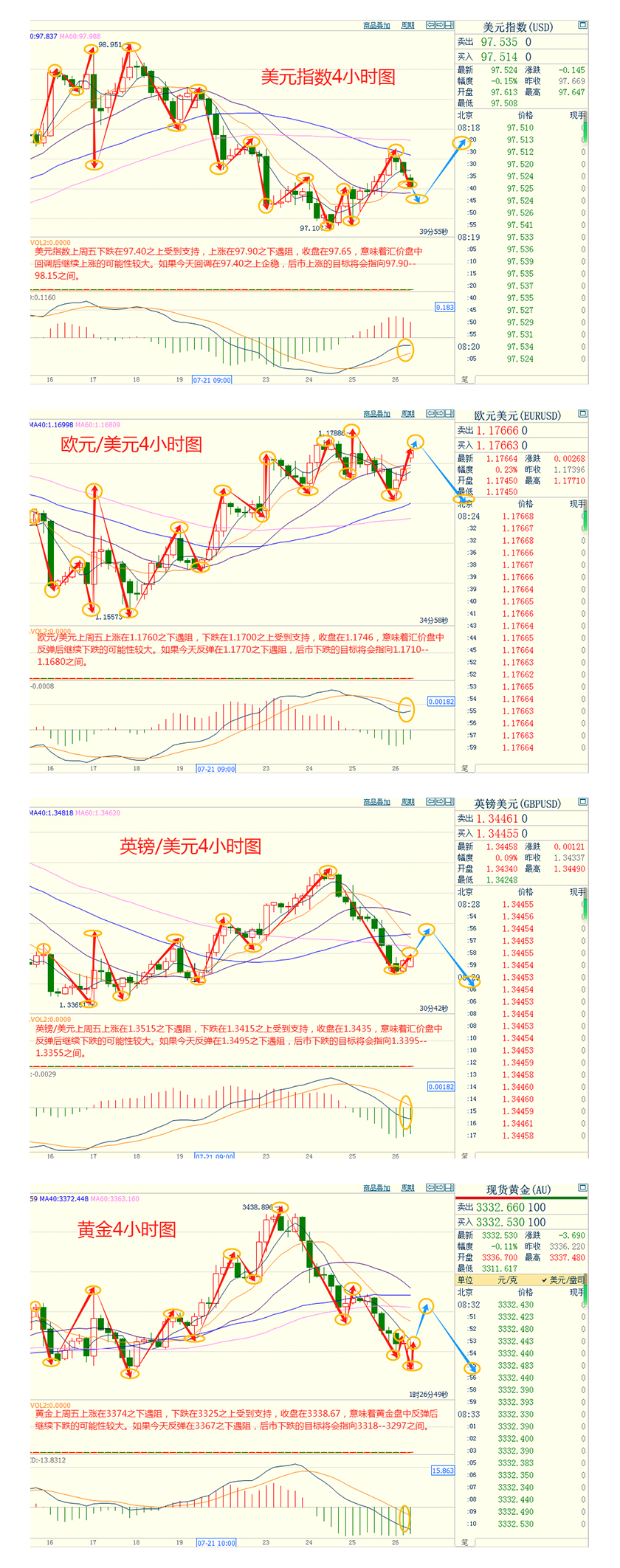 美元指数:可以在97.90---97.40的区间下限买入,有效破位25个点止损,目标在区间的上限。