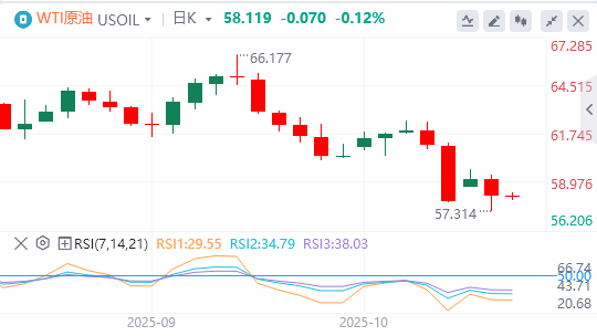 受国际能源署(IEA)对2026年石油供应过剩的预警影响,原油价格持续走低。截至当前,WTI原油价格报58.11美元/桶,Brent原油价格报61.93美元/桶。
