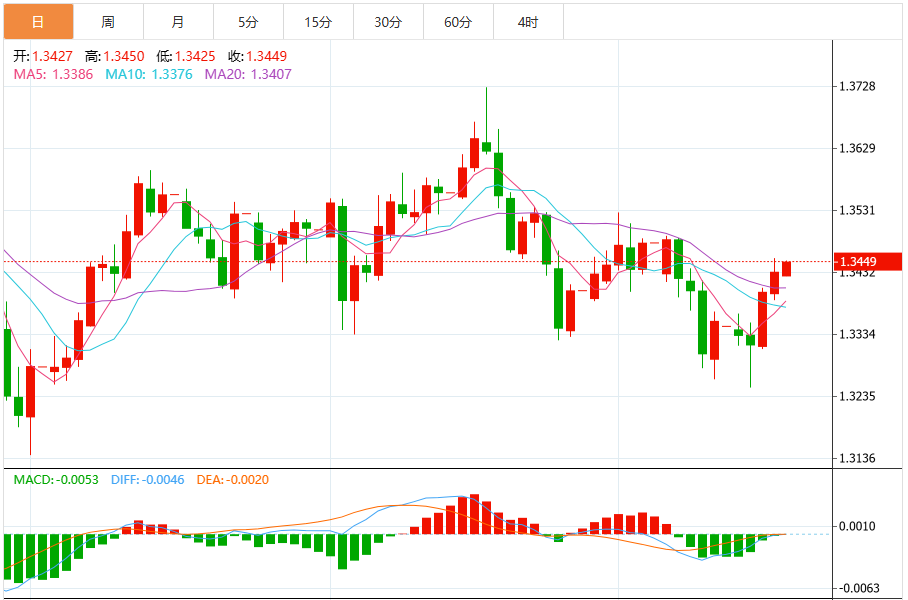 当前,英镑/美元正面临1.3450附近的50日EMA阻力位,不过由于美国方面缺乏重要数据发布,市场动能仍偏向多头。