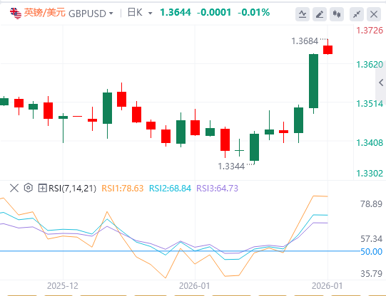 2026年1月26日,英镑在主要货币中表现不一,周一兑美元温和上升至1.3665附近。此前周五公布的强劲英国经济数据推动英镑大幅上涨,随后走势趋于平稳。英国1月全球采购经理人指数(PMI)初值优于预期,叠加12月零售销售意外回暖,为英镑提供支撑。