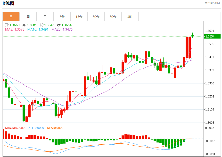周一欧洲交易时段,英镑兑美元汇率维持在1.3655,涨幅达0.06%。