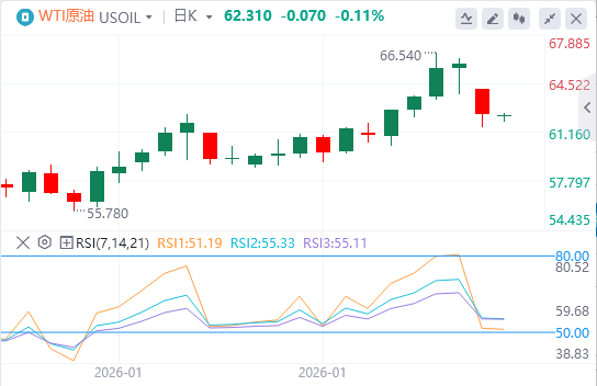 2026年2月3日,美国西德克萨斯中质油(WTI)价格未能延续前一日从61.20美元区域反弹的走势,周二延续弱势,连续两个交易日遭遇抛压。当前价格运行在61.75美元附近,盘中跌幅达0.40%,整体走势偏空。