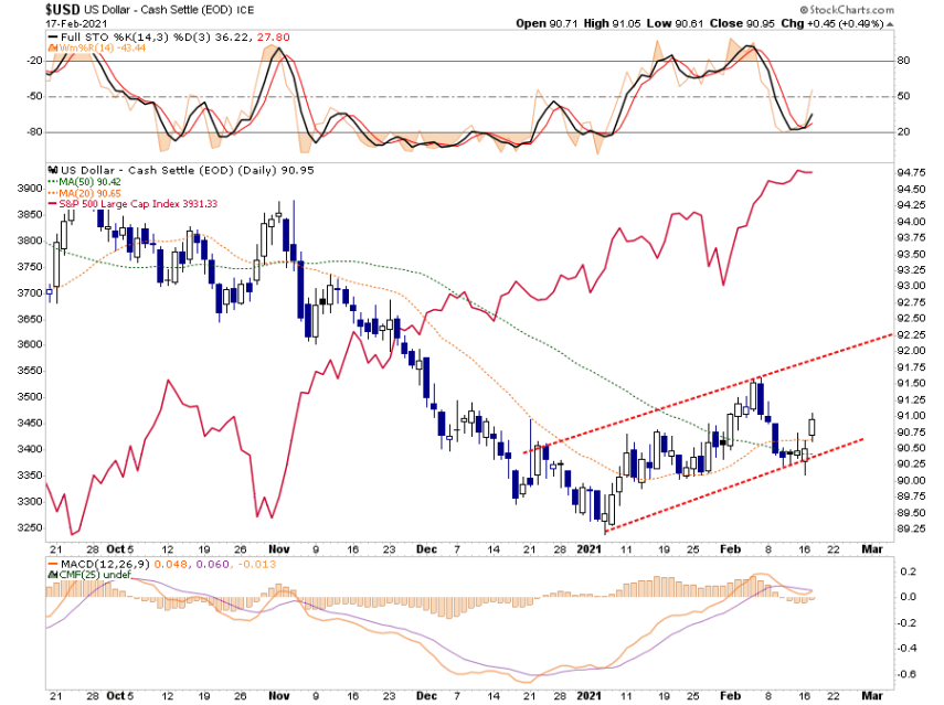 如上所述,由于美元和股票之间的负相关性,美元走强将不利于股票市场。最重要的是,美元随着利率的上升而走强,可能会严重削弱“通货再膨胀交易”。