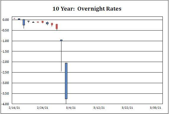 回购市场也正在上演疯狂的一幕:10年期国债回购利率在周三暴跌至-4%后,今天甚至进一步跌至-4.25%,这是从未出现的历史最低水平,远低于-3%—0%的正常区间。