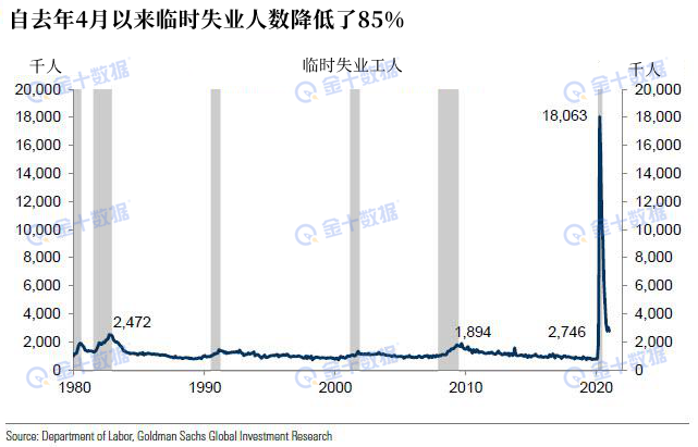 还要关注临时失业工人数量。这个数据在去年4月暴涨至1810万,今年1月回落到275万。临时失业工人减少会缩小今年夏天就业人数快速增长的空间,但与疫情前的就业增速相比,依然会是一个积极因素。