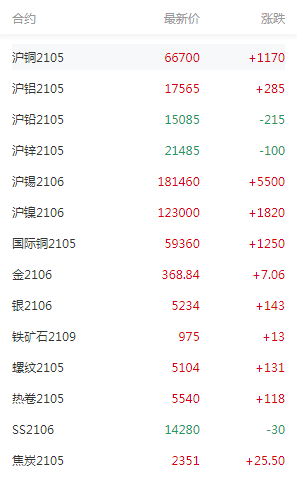 贵金属方面,沪金涨1.95%,沪银涨2.81%,美国上周初请失业金人数意外上升,给经济复苏前景蒙上了一层阴影,美债收益率及美元指数出现下滑,加之拜登宣布的2.25万亿美元支出计划提振了通胀预期,贵金属受震大幅上涨。同时,美国基建计划利好新能源汽车、光伏行业等行业,白银的工业需求将得到有效提振。关注晚间公布的美国3月非农就业数据。