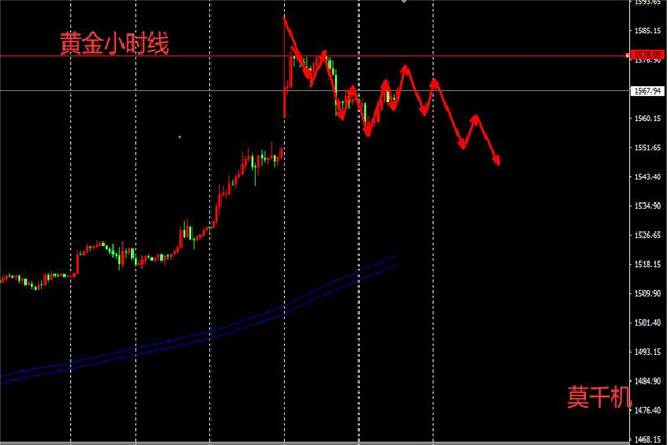黄金在昨日大幅杀跌后,早盘延续昨日走势,最低给到了1555.20美元/盎司,随后得到支撑出现上涨,最高给到1570.78美元/盎司,刚好是早盘布局空单点位1570美元/盎司,随后下跌给到了1563美元/盎司,莫千机认为,在小时线黄金在出局1588美元/盎司后,出现一波下跌五波走势,预期黄金会运行一波上涨的ABC调整,预期黄金在1563位置得到支撑,将出现C浪上涨,上方压力位关注1573-1578美元/盎司压力,下方关注1563-1555支撑,进一步下破将考验1537-1531美元/盎司。