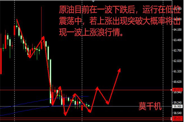 原油开盘在58.746美元/桶,跳空低开后油价出现反弹,油价逐步走高,最高给到了59.243美元/桶,随后出现承压,油价出现走跌,现报价58.990美元/桶。原油在触及64.67-65.6压力位后,油价运行了一波下跌流下跌走势,最低给到了58.640美元/桶附近,莫千机认为,原油目前处于震荡触底走势中,支撑在58.6美元/桶位置,若油价上涨进一步突破60.0美元/桶位置,大概率上油价将出现一步上涨走势。晚间交易思路上考虑高空低多思路,上方关注60.0-60.42美元/桶压力,下方关注58.6-58.0美元/桶支撑。
