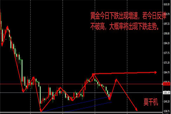 黄金早盘开盘在1560.26美元/盎司,跳空开盘后黄金出现承压迹象,最低给到了1546.40美元/盎司,随后低位企稳出现反弹,现报价1550.71美元/盎司,莫千机认为,黄金在欧盘时段下破多空分界线1550位置进一步走低,最低给到了1546.40位置得到支撑,就目前结构上看,黄金下跌力度出现增强迹象,若黄金上涨力度不增强,将出现一波下降走势。晚间交易上考虑反弹做空为主,上方关注1558-1563美元/盎司压力,下方关注1546-1538美元/盎司支撑。