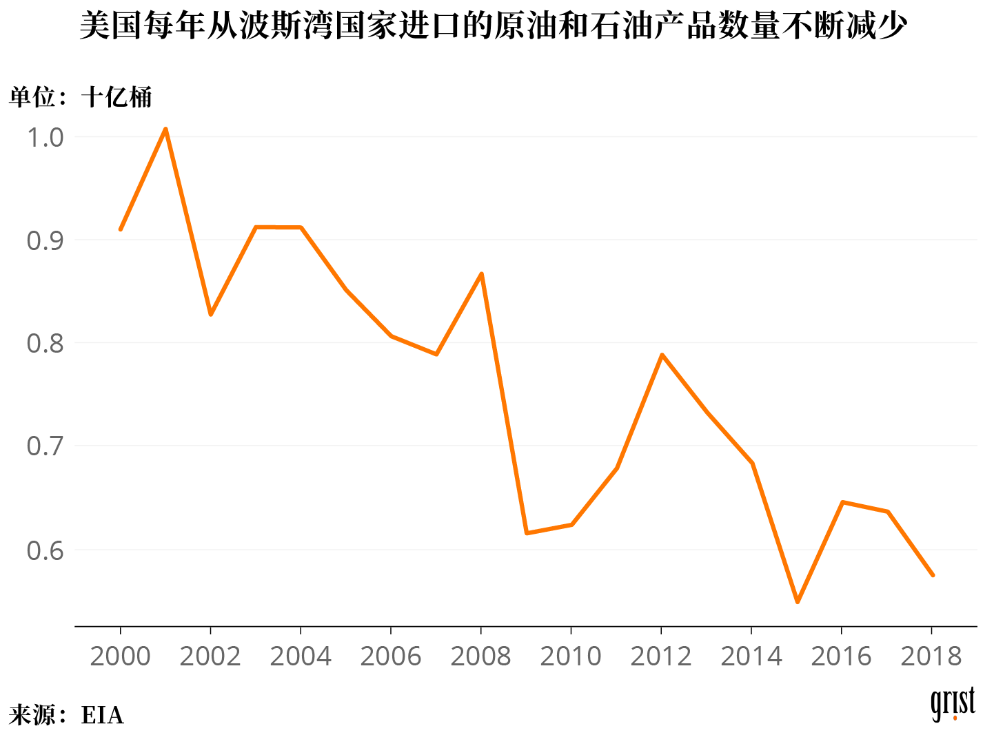 据EIA,从2002年到2018年,美国从波斯湾产油国的原油进口量总体上也确实呈递减趋势,体现美国对中东地区的原油依赖程度有所减少