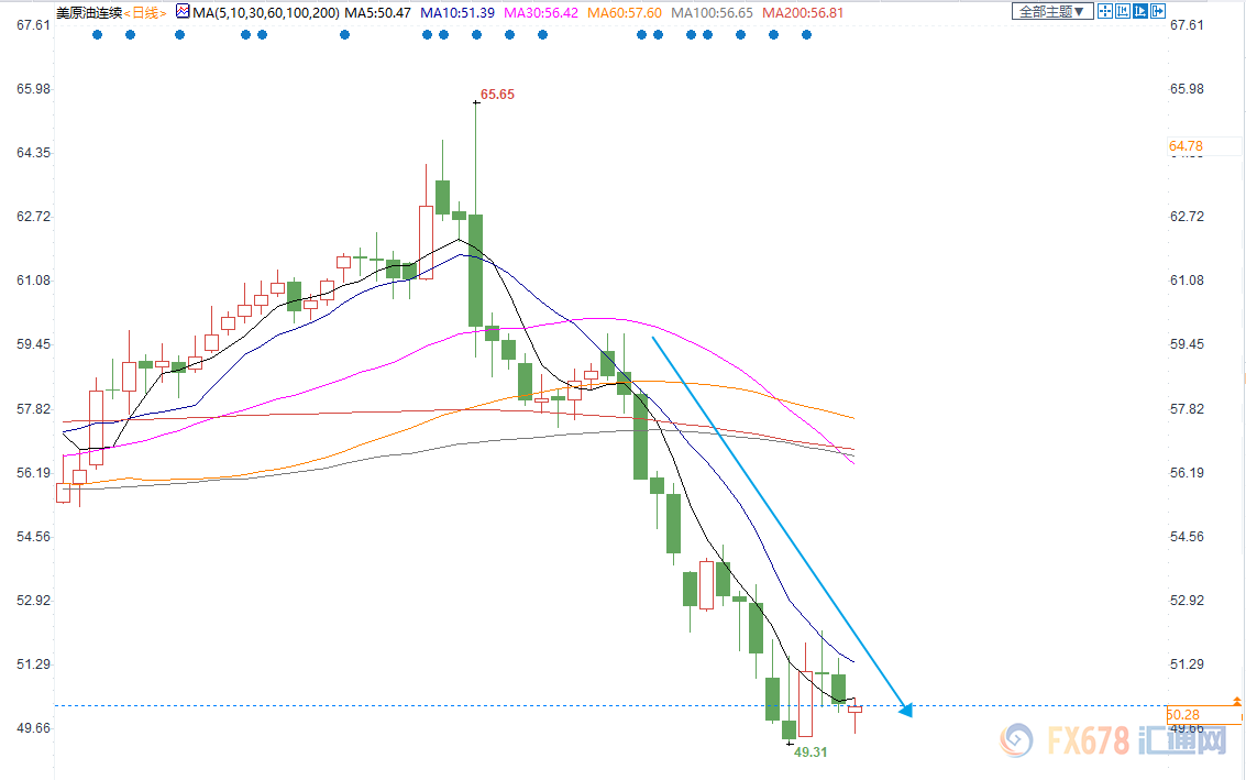 随着近期美原油跌破了此前的密集成交点位和42.36/76.9的23.6%分位50.5,短时间油价下行走势依旧明显,从日内来看,美原油触及50.49美元后有所回落,意味着50.5/51依然是个重要阻力,任何时间站上51美元,料油价有进一步上行的空间。但是如果持续收于这一线下方,需警惕美原油有进一步回落的空间。