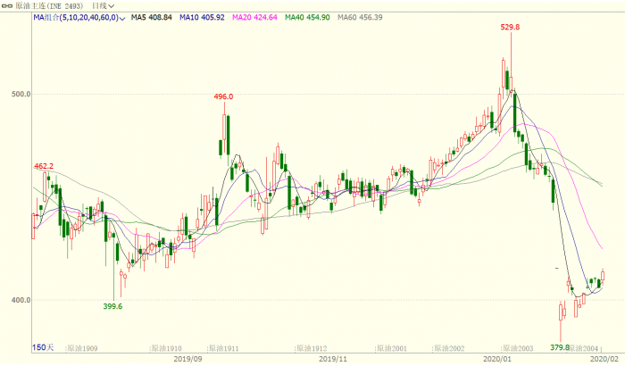 周三(2月19日)上海原油价格上涨。主力合约SC2004,以413.5元/桶收盘,上涨5.7元,涨幅为1.4%,创两周半新高。俄罗斯暗示仍将在3月会议上讨论减产60万桶/日,且美国对于俄罗斯石油公司一下属企业实施制裁,同时利比亚原油产量持续下降,这都使得油价反弹。俄罗斯能源部副部长Pavel Sorokin周二表示,OPEC+产油国的能源部长将按最初计划于3月6日在维也纳举行下一次会议。会上将考虑一个顾问小组提出的再减产60万桶/日的建议。且此前俄罗斯也表示支持OPEC+的决定,这部分缓解了市场对于油价下行的压力,市场押注OPEC+最终能在减产问题上达成一致,因此油价收复失地。