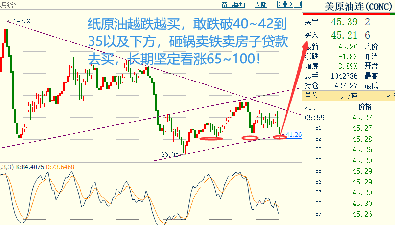 纸原油属于无杠杆产品,我们做的是长线(本人也有持仓多单),短线不要找我,我也不指导短线!跟随美原油在50布局的多单在54上方将近10%收益,我也没有出局;当前已经下跌,只有被动持仓,建议接下来越跌越买,短期内会被套,但我不在乎,今年必定大收益!短线目标看涨50~55,波段坚定的60~65,最大70以上冲击100;灵活的朋友,配合短线仓位打差价! 银行纸原油中线多单建议设置“到期移仓”合约到期自动续期,省心省力!