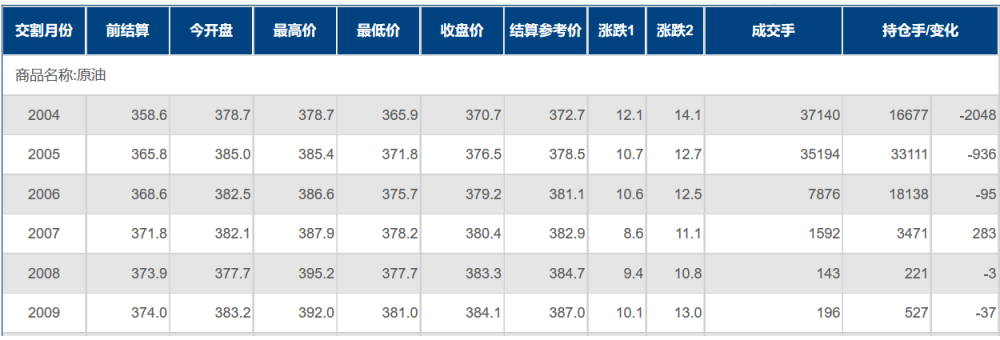 期货合约和成交情况一览