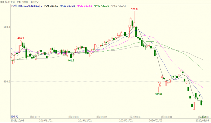 周一(3月9日)上海原油价格全天封死跌停。主力合约SC2005,以338.1元/桶收盘,下跌21.6元,跌幅为6.01%。日内布伦特原油现报33.96美元/桶,暴跌25%;WTI原油现报30.14美元/桶,暴跌27%,按目前价格看,预计下一交易日INE原油仍将跌停。油价暴跌的诱因是OPEC+同盟的破裂,而同盟之所以破裂是因为俄罗斯不支持沙特进一步减产以应对卫生风险冲击的建议。眼下不单是追加减产已经无望,就连现有的减产协议也将于本季度末到期。更有甚者,沙特还要大幅增产,致使大量廉价原油将会潮水般涌向市场。具有讽刺意义的是,原油价格现又重新回到了催生OPEC+联盟时的水平。