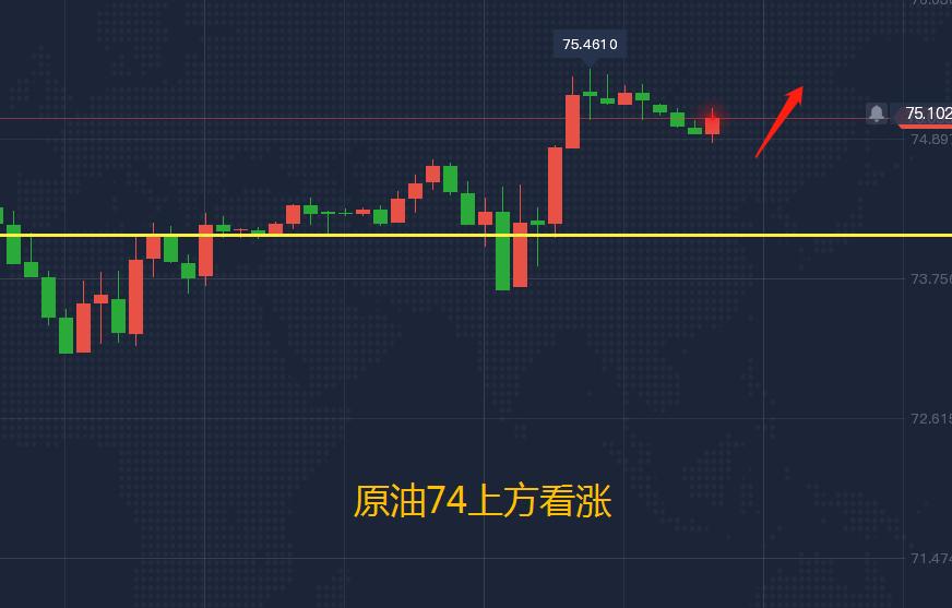 原油昨天的走势不出悬壶所料,还是探底回升,多头力度依然存在,而我们精准的给出了日内最低点的73.6多单成功止盈75,非常的完美,悬壶对于原油的敏感度还是那么灵敏。日内继续看涨,回踩可能没有那么大,日线和H4都要开始发力了,所以大家可以现价74.9-75直接多,损74,看76-77!如果意外给74.5-74.6可以加仓,止损不变,今天就是74.2上方强势看涨!