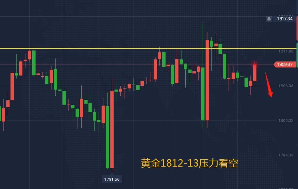 从技术面来看,日线上没有很明确的走弱,毕竟均线方面表现还算良好,价格也是依托MA5.10上方运行,所以我们暂时还不能看一个单边下跌的极弱走势,尽量看区间,而做空的话也不能过于激进,如果怕踏空的朋友可以分批操作。对于凌晨下跌的行情,早间的反弹我们肯定是要博一次空单的,所以早间不管怎么样都要空一次,而上方压力位于凌晨的起跌点1812附近,所以早间反弹给到1812可以空一次,损1822,看1802。