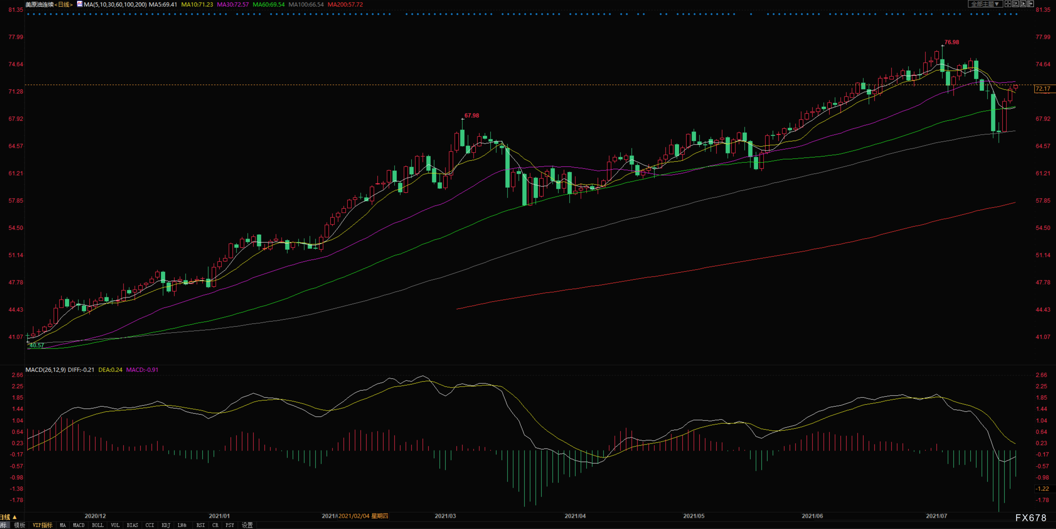 周五(7月23日)美油上涨0.16美元,涨幅为0.2%,结算价报72.07美元/桶;布油上涨0.31美元,涨幅为0.4%,报74.10美元/桶。两大指标原油本周均录得上涨,美油涨0.4%,布油涨0.7%,结束此前连续两周下跌走势。从美国到亚洲再到欧洲,燃油需求和公路交通依然坚挺,支撑了有关经济复苏并未脱轨、全球库存将继续萎缩的预期。需求担忧被证明夸大了,这就是油价回升主要原因。