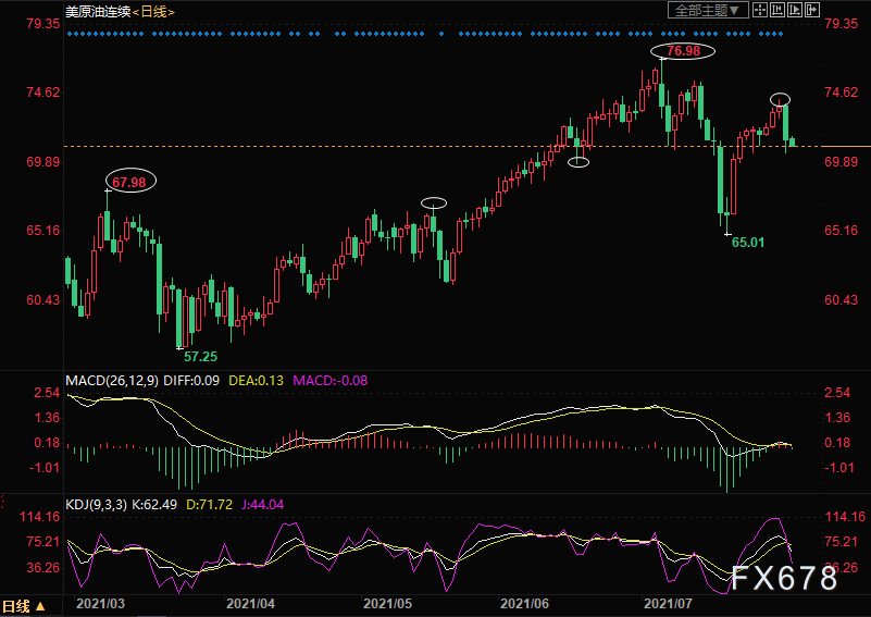 上方初步阻力关注5日均线72.44,进一步关注7月30日高位74.23以及7月6日高位76.98。