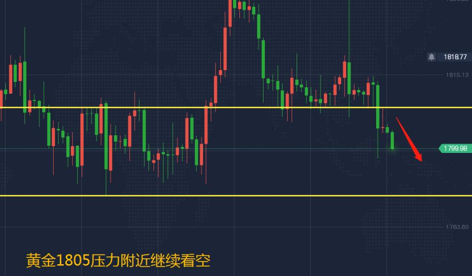 黄金昨天整体走势走弱,在消息面的持续刺激下,日内金价还是以1815为压力走出了下跌,我们在欧盘时段也是激进的给出了1810的空单,以免踏空,而1815没有给到机会加仓,晚间迎来暴跌止盈1800,虽然说点位不好,但是方向对了,点位的差别只是利润的多少而已,凌晨金价虽然有反弹,但力度不大,还是处于一个震荡下跌的走势中,所以日内的反弹应该都是诱多,反弹只要不过凌晨的高点1808应该都是做空,行情就会依然处于弱势当中。