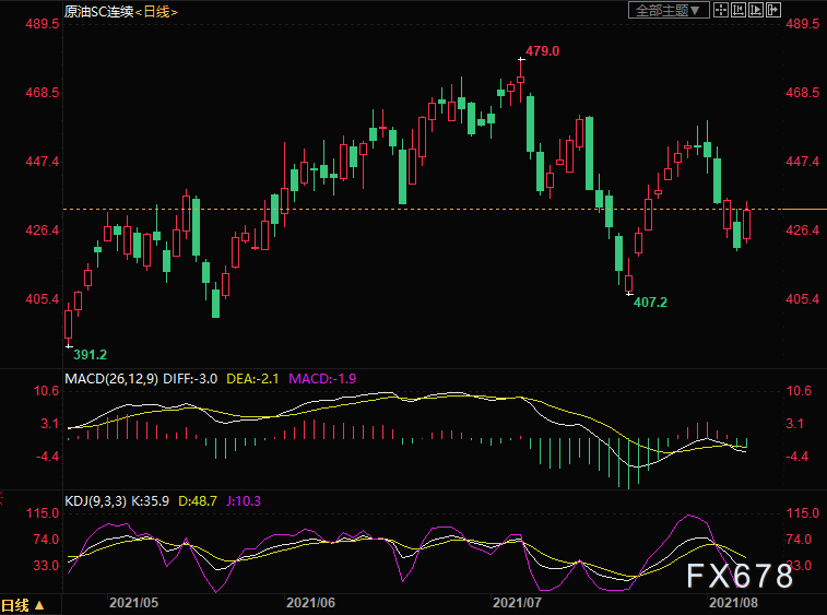 交易逻辑:美原油周三触底反弹,近期地缘政治风险令油价获得一定的支撑,伊朗强硬派总统莱希上台也让伊朗石油的威胁显得遥遥无期。不过短线油价反弹高度令人怀疑,周四阳线仅收复了周三的一半失地,显示反弹力度并没有太强,上方空间也可能有限。日内油市也需要关注非农就业数据,如果数据强劲,有望提振油市需求,为油价带来支撑。不过技术面显示油价上涨或是超跌反弹,MACD二度死叉对油价后市不利。建议投资者日内谨慎做多。