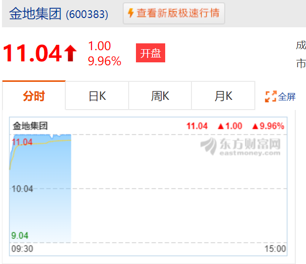 A股房地产板块也拉升走强,金科股份、金地集团、中交地产封涨停,保利地产、万科A、新城控股大涨超9%。