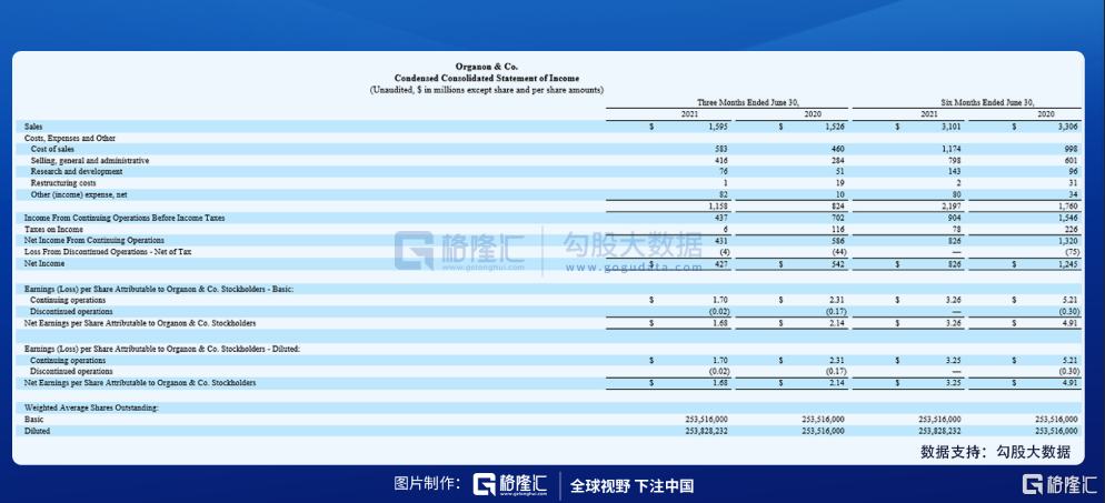 根据8月16日公布的2021财年中报,Organon2021财年上半年的营业收入为31亿美元,2020年同期为33亿美元;归母净利润为8.26亿美元,2020年同期为13.2亿美元。