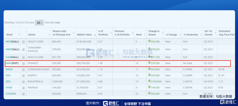 根据周一提交的文件,目前,Burry旗下对冲基金Scion Asset Management持有23.55万股、价值3100万美元的ARKK看跌期权。