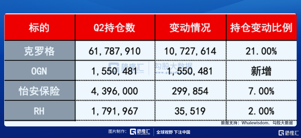 另外,怡安保险为Q1新增标的,二季度增持30万股,新增比例7%;RH则只新增2%。