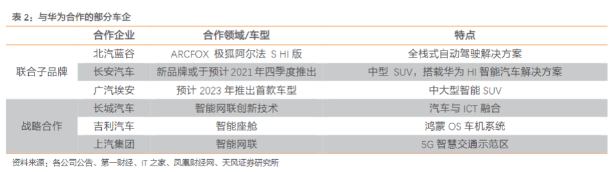 天风证券研究表示,2021年以来,华为大举切入智能座舱及自动驾驶领域,发布包括鸿蒙OS在内的多款产品,同时与国内北汽、长安、广汽、小康等多家自主品牌车企展开深度合作。