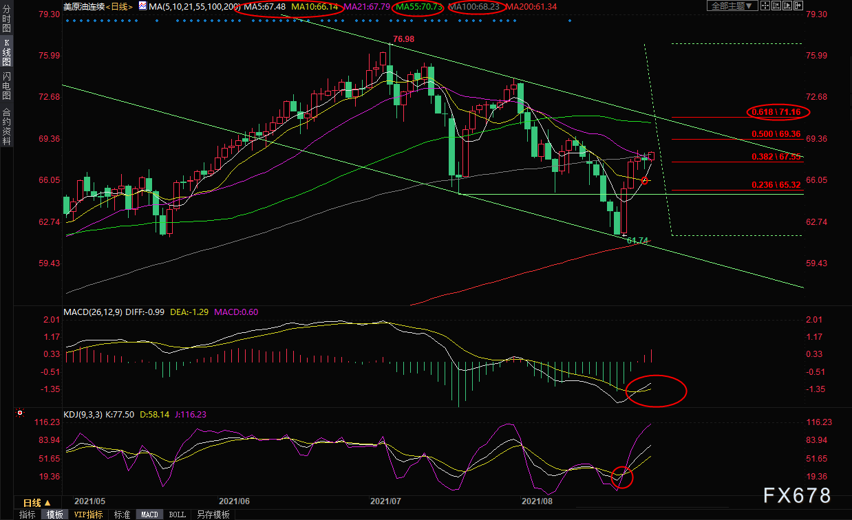 周五(8月27日)亚洲时段,美原油小幅上涨,目前交投于68.30附近,初步顶破了100日均线和21日均线阻力。尽管美元反弹对油价有所压制,但之前原油库存下降的利好支撑仍在,而且市场对疫情的担忧情绪降温,同时能源公司在预计周末潜在飓风来袭之前开始关闭墨西哥湾的生产,导致人们对近期供应中断感到担忧,油价有望打开新的上涨空间。