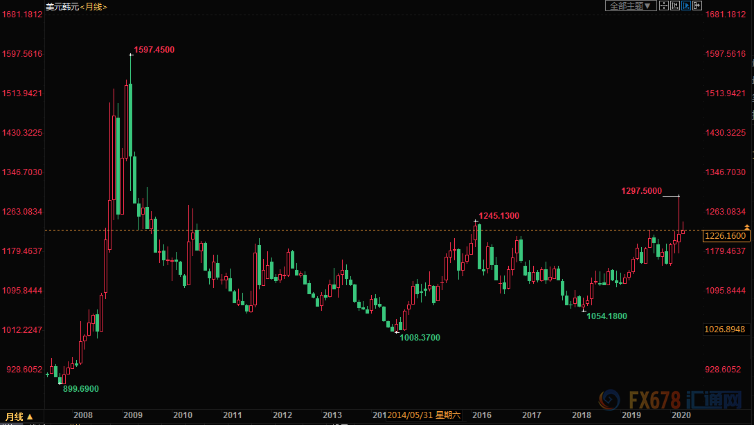 尽管美元兑韩元在3月仅上涨1%,但是月度波幅高达10%,一度逼近13000关口,为2009年以来的最高水平,而美元兑韩元的上一个高峰是在1997,即亚洲金融危机期间。
