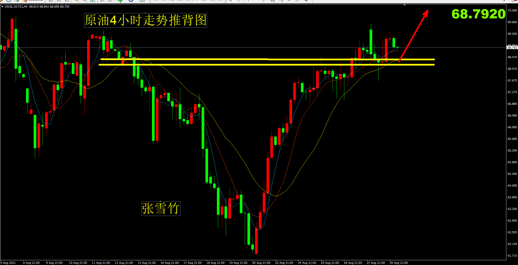 而我们给出的68.4、68.1多单也是提示在68.8位置利润收割,先行进帐,再重新调整入场操作点位。