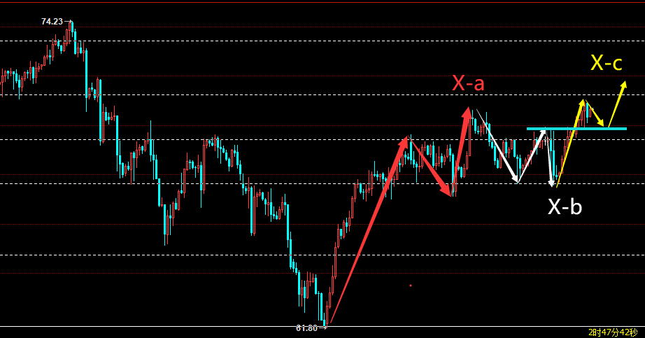 原油多头再次发力一鼓作气的来到71.00一线,日线级别再次收出一根小阳线。虽说多头非常强劲几乎没有太大的回调出现,但是昨天的晚评当中图灵依然给到回调做多的思路,从盘面来看给到1美金左右的获利空间,还是非常给力,目前不管从那个级别来看多头的意愿都非常的明确。今日还是先看一波回落调整走势,然后才能再次做多,回落大致看到70~69.70区域,此位置也是做多的位置,日内可以考虑先短空在做多,主思路建议等待价格回落至69.95一线多单介入,风控点放置69.50下方,目标位看至71.00~71.50。结构上目前处于X浪c的反弹上行最后一个阶段。(博易大师报价,图灵波浪理论)图表为原油2小时图